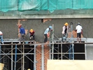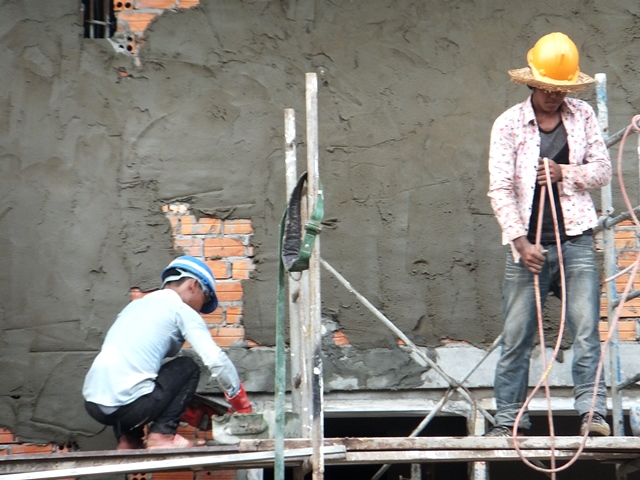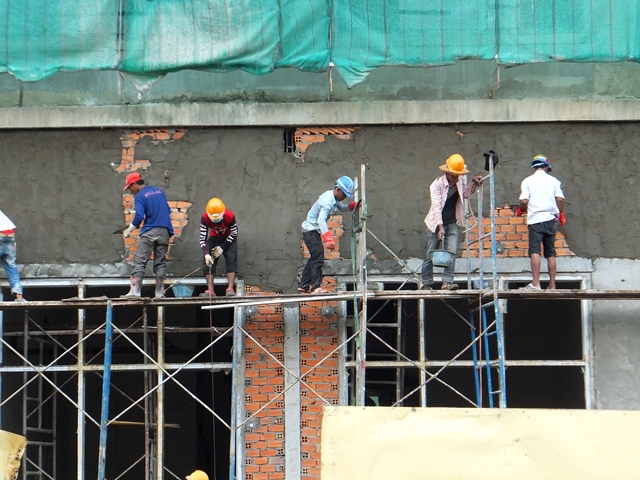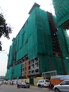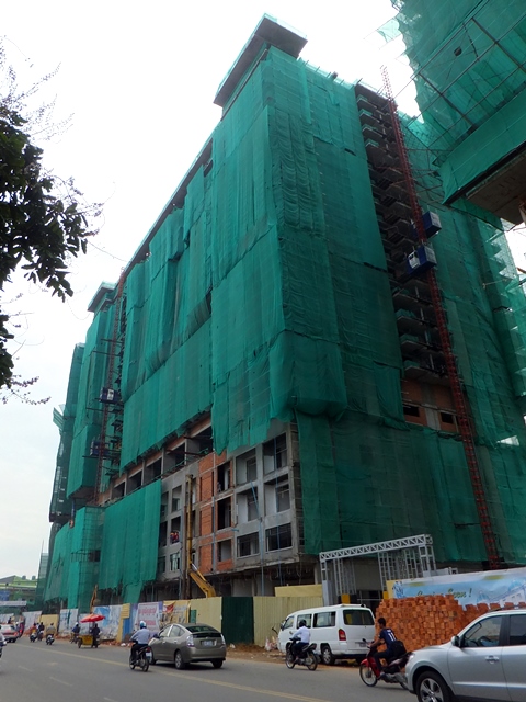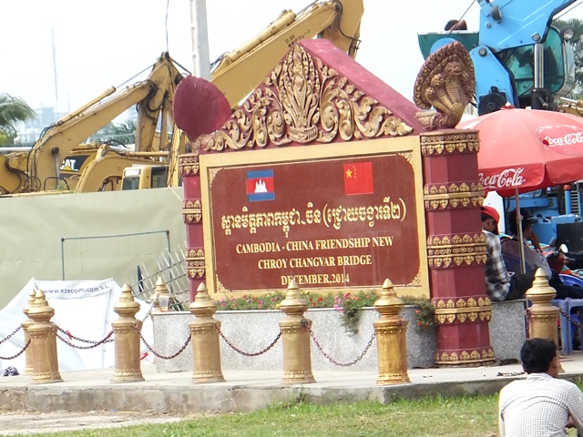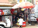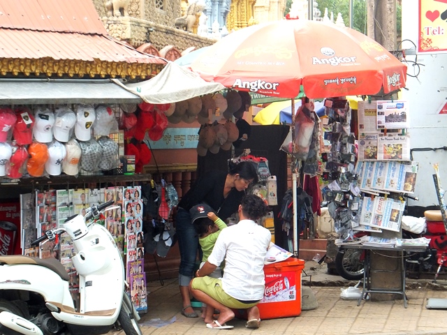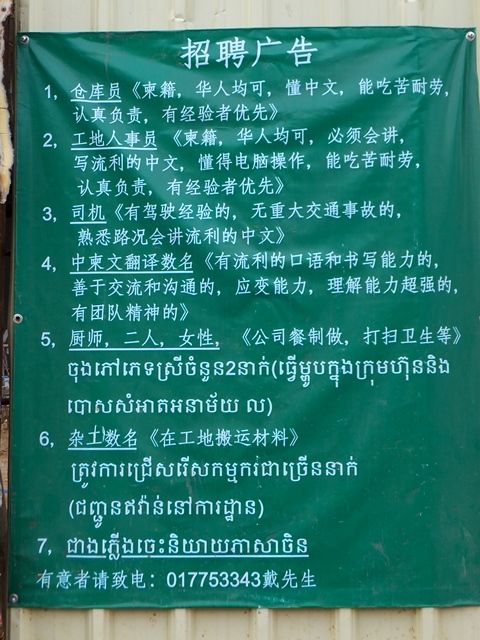 建設現場前の 新聞スタンドでは 中国語新聞も 売っている |