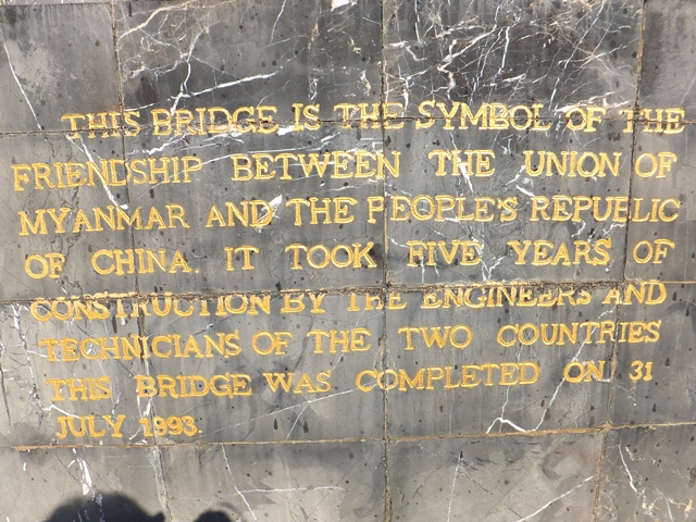 ガゴー川橋が 中国の援助による ことを示すプレート |