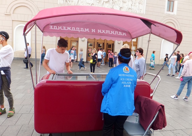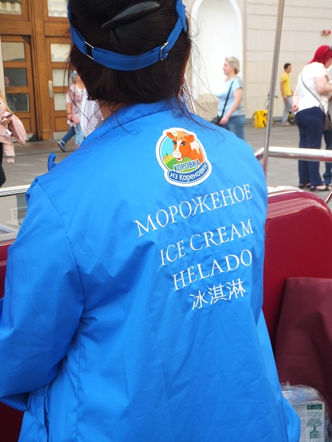 アイスクリーム売りの 女性の背中には 「冰淇淋」の文字 |