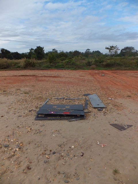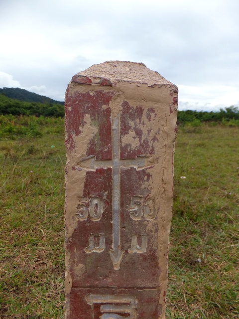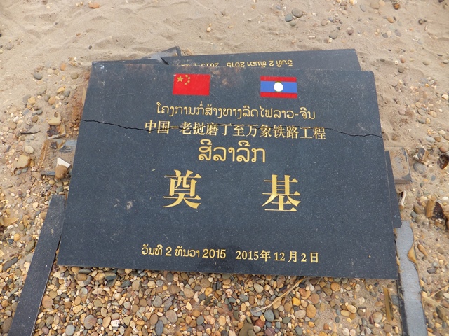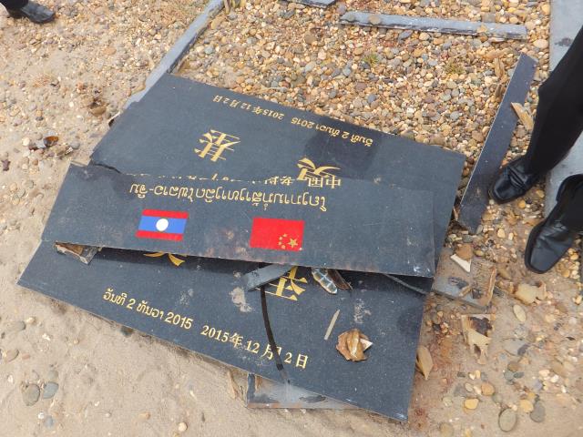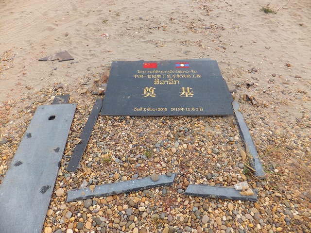 ビエンチャン郊外の 起工式現場。 石造りのプレートは 倒れ、割れていました。 |