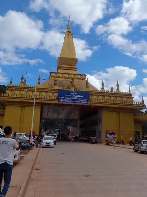 ラオス (磨丁)側国境 ゲート。向こうは 中国(磨憨 モーハン) です。右の写真は 6年前(2010.9)の ゲートです。 |